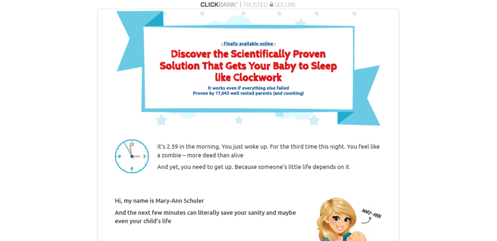 The product itself is an eBook. Some potential customers will question whether a digital book is worth paying for when there’s free information online. Your content needs to position Baby Sleep Miracle as a structured, proven system rather than just another collection of tips.
