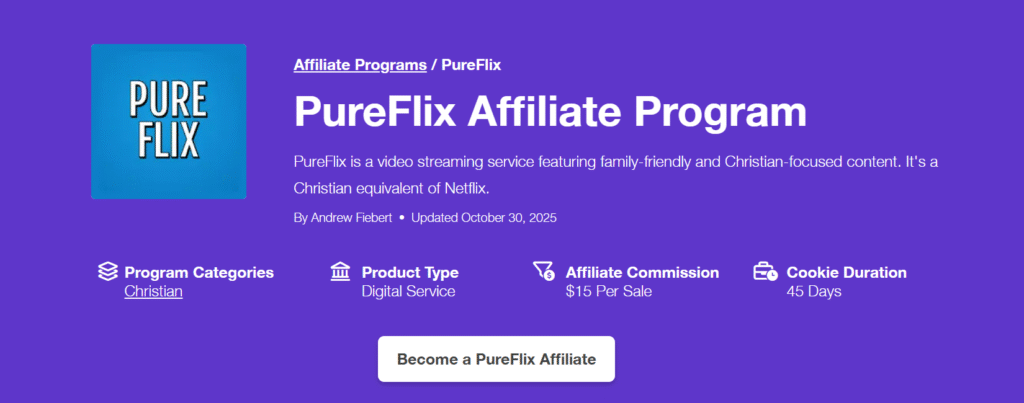 What if you could earn recurring commissions promoting a streaming service that millions of faith-based families are actively searching for? The Pure Flix affiliate program offers exactly that opportunity. With 15% commissions on every subscription you refer and a generous 45-day cookie window, this program taps into the massive Christian entertainment market. Whether you run a faith blog, Christian lifestyle channel, or family content site, this could be your ticket to consistent affiliate income.