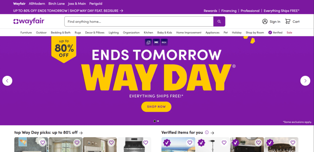 Wayfair runs frequent sales and promotions, which helps conversion but can frustrate customers. Someone might click your link, see an item at regular price, then return days later when it’s on sale but outside your cookie window. There’s not much you can do about this except promote items when they’re already discounted.